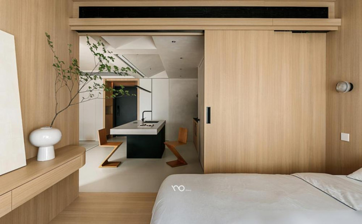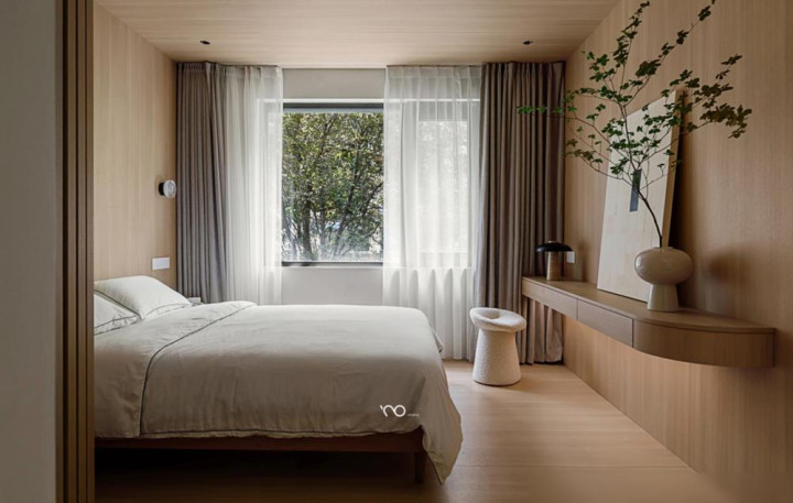 半开放式卧室用三联动木门隔断完全不挡光。