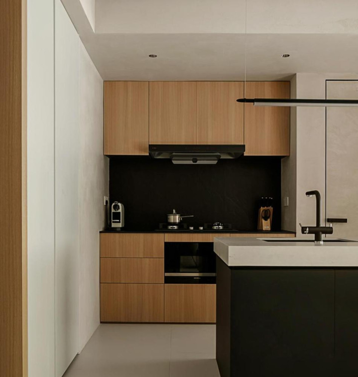 厨房移到过道居然还塞下了岛台。