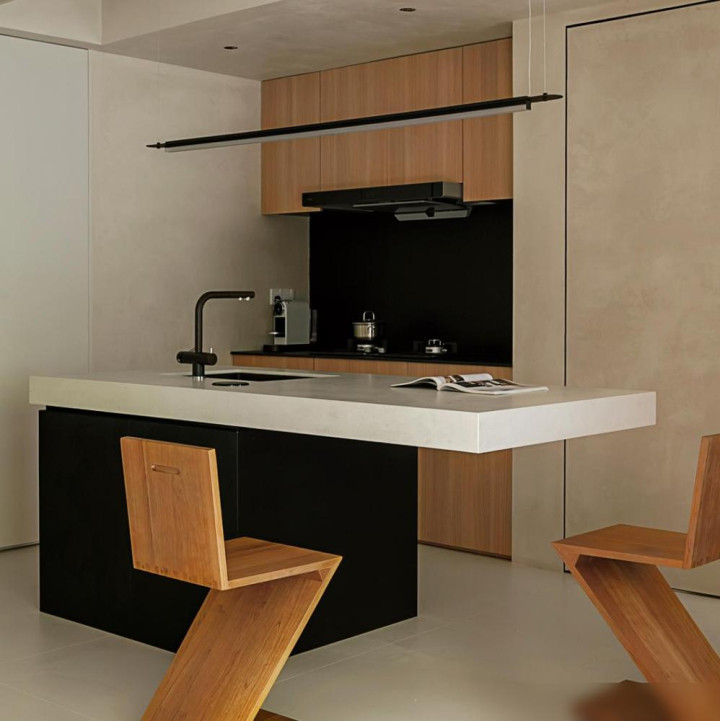 悬浮餐桌直接插在岛台侧面这脑洞太大。