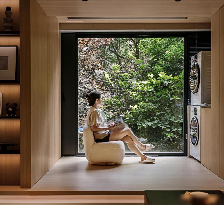 阳台地面抬高这招和日式设计有点像。