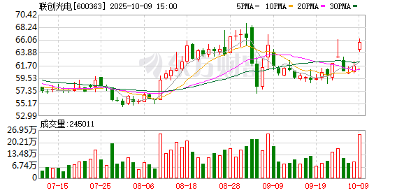 10月9日,联创光电(600363)发布公告,截至2025年9月30日,公司累计回购186万股,占总股本的0.4109%,回购金额为1.05亿元,回购价格区间为53.44元/股至62元/股。